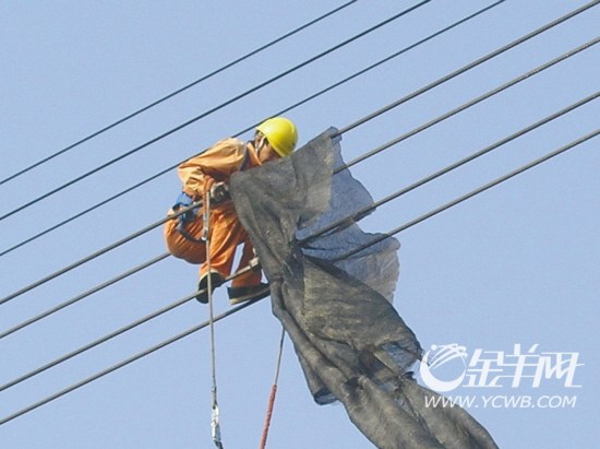 當(dāng)天中午11時許,輸電部亞運保電巡維人員萬賀彪在巡視220千伏安遠(yuǎn)甲線時,發(fā)現(xiàn)N54-N55段A相導(dǎo)線懸掛一條長約20米的黑色膠網(wǎng),并針對此情況立即向輸電部應(yīng)急辦匯報,輸電部應(yīng)急辦公室隨即協(xié)調(diào)管轄班組進(jìn)行消除工作。緊急缺陷就是命令,班組接到詳細(xì)現(xiàn)場的信息后,通過技術(shù)分析和方案比較,確定現(xiàn)場不具備帶電作業(yè)的條件。于是向輸電部應(yīng)急辦提出臨時停電消缺處理。