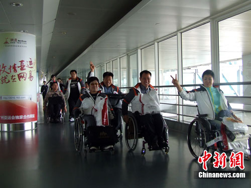 這是廣州白云口岸迎來的首批亞殘運會體育代表團運動員,也是白云口岸首次迎來大批量乘坐輪椅的旅客。