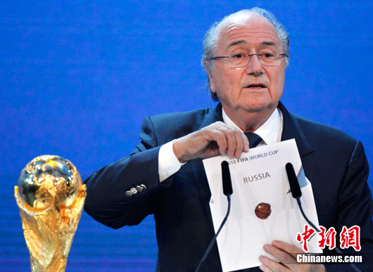 中新網(wǎng)12月3日電 綜合報道 北京時間12月2日23時38分(當(dāng)?shù)貢r間16時38分),2018年與2022年世界杯申辦投票結(jié)果在瑞士蘇黎世會展中心揭曉。國際足聯(lián)主席布拉特宣布:俄羅斯獲得2018年世界杯主辦權(quán),卡塔爾獲得2022年世界杯主辦權(quán)。