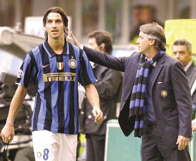 國米贏球又爆內(nèi)部有隙 伊布再與曼奇尼交惡(圖)