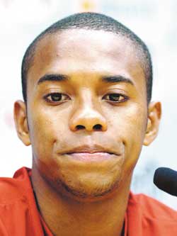 從電視報(bào)道中看到中國(guó)政府和軍人的抗震救災(zāi),皇馬球星羅比尼奧非常感慨。