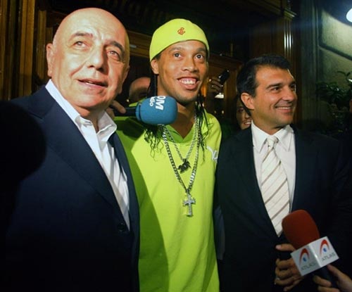 意大利當(dāng)?shù)貢r間7月15日23時,AC米蘭官方宣布,俱樂部已經(jīng)與巴薩之間就羅納爾迪尼奧的轉(zhuǎn)會達(dá)成一致。小羅將在7月16日飛往米蘭,接受球隊的體檢,如不出意外將與其簽約3年,年薪650萬歐元。