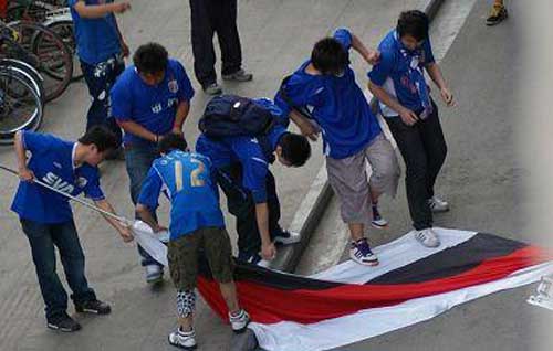 5月3日河南四五老窖隊(duì)客場(chǎng)對(duì)陣上海申花隊(duì)的比賽前,發(fā)生了上海部分球迷毆打我河南球迷的野蠻行為,還集體踐踏我河南球迷團(tuán)隊(duì)的助威旗幟。對(duì)此我們表示對(duì)上海賽區(qū)委員會(huì)的強(qiáng)烈抗議,并要求上海賽區(qū)委員會(huì)對(duì)部分滋事上海球迷進(jìn)行嚴(yán)厲處罰。