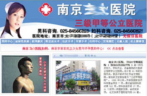 率先發(fā)現(xiàn)這一事情的是某李毅球迷組織,他們的偶像李毅竟然上了南京某性病醫(yī)院的宣傳網(wǎng)站的頭條位置。一則廣告是李毅低垂著腦袋,下面配的文字是“東大男科恢復(fù)您的自信與健康”,而另一則廣告則更加“露骨”,李毅的半身裸照配著“小手術(shù)解決男人大問題,重振男人雄風”的文字。某球迷憤憤不平地表示:“這樣的文字,再配上大帝裸露上半身的照片,給人的感覺要么是李毅通過這樣的手術(shù),重振‘雄風’的,要么就是李毅成了這家性病醫(yī)院的代言人!”
