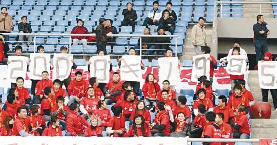 中超標(biāo)語(yǔ)甚至成為奧運(yùn)后中國(guó)足球的一棵救命稻草,讓聯(lián)賽不至于清湯寡水,還別有滋味。球迷因?yàn)閷?xiě)標(biāo)語(yǔ)而引發(fā)對(duì)足球的關(guān)注更是無(wú)價(jià)之寶。