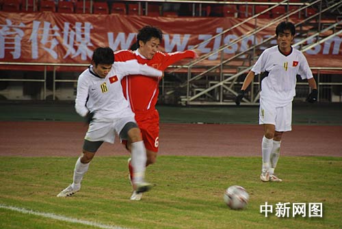 由于在預(yù)選賽首場(chǎng)比賽中客場(chǎng)輸給敘利亞,國(guó)足已經(jīng)坐上了火山口。反觀對(duì)手越南隊(duì)雖然主力前鋒缺陣,但士氣正旺的他們?cè)诳蛨?chǎng)也表現(xiàn)出了在國(guó)足身上拿分的想法。不過(guò)比賽開(kāi)始后僅僅一分鐘,國(guó)足就獲得一個(gè)角球機(jī)會(huì),郜林接蒿俊閔罰球頭球破門,為中國(guó)隊(duì)先拔頭籌,中國(guó)隊(duì)1-0領(lǐng)先越南。第8分鐘國(guó)足錯(cuò)過(guò)擴(kuò)大比分的機(jī)會(huì),郜林將一次單刀赴會(huì)浪費(fèi)。三分鐘后,越南隊(duì)打出漂亮配合,由阮宇峰小角度推射攻破了國(guó)足大門,將比分扳為1-1平。