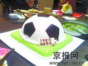 球。足球旁邊,她還用巧克力做成了一張賀卡,賀卡上寫著“上帝愛你,健康快樂”落款是“HD”(韓端)!斑@個蛋糕很不好做,專門定制的,600多塊錢才做了一個!表n端略微自豪地說。鮮花與巧克力只是點綴,從下午開始韓端就與男友在一個酒吧里,享受二人世界里的甜言蜜語。