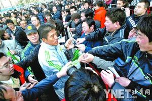 昨天上午9點,新賽季國安主場比賽套票在工人體育場正式發(fā)售。重回福地工體讓京城球迷的熱情重新迸發(fā),工體和國安在北京城的人氣也開始重新凝聚。而國安一線隊隊員到場與北京球迷見面引發(fā)的效應(yīng)更加驚人:8000張?zhí)灼币惶熘畠?nèi)全部售完,國安俱樂部不得不考慮再加印2000套,以滿足球迷的需求。
