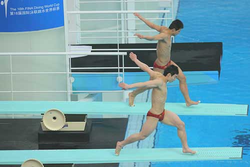 賽前,中國(guó)跳水隊(duì)將此次賽事作為奧運(yùn)會(huì)的預(yù)演來選派陣容,老將王峰在這支人才濟(jì)濟(jì)的國(guó)家隊(duì)把穩(wěn)了自己的位置,再度出戰(zhàn)男子三米板雙人的比賽。