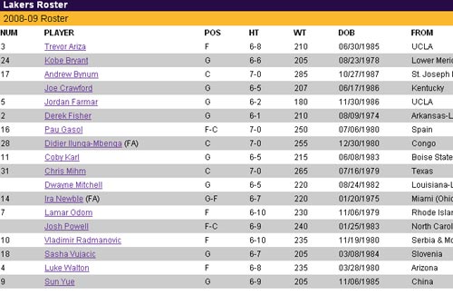 湖人隊(duì)官方網(wǎng)站截圖
