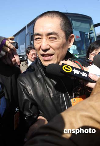 前來出席十一屆全國(guó)政協(xié)一次會(huì)議的張藝謀甫一下車,就被眼尖的記者發(fā)現(xiàn),他的身邊迅速形成了一個(gè)巨大的包圍圈。面對(duì)記者圍堵,張藝謀起初一言不發(fā),后見“形勢(shì)不妙”,便停下腳步。