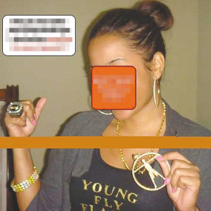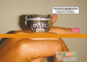 NBA巨星韋德剛剛向好萊塢女星尤尼昂求婚成功,結(jié)果又傳出緋聞。一名少女(上圖)將一組相片寄給網(wǎng)站,稱(chēng)韋德和她一夜情后感覺(jué)很爽,大方地將大堆禮物送給了她,其中包括韋德唯一的總冠軍戒指(上圖)、佩飾金項(xiàng)鏈以及貼身T恤衫等。