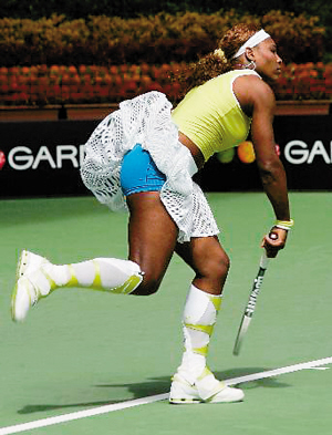 世界排名6 什么樣的衣服小威都敢穿出來(lái)秀,問(wèn)題是在大太陽(yáng)下,有必要網(wǎng)眼裙再配上黃白雙色及膝戰(zhàn)靴嗎?