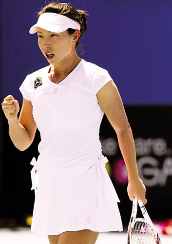 “中國潔”前天俏麗登場,一身純白裝扮在蔚藍色的場地中顯得格外明亮。“單飛”后鄭潔與新的服裝贊助商簽約,她的球衣不再像過去那么隨大流,特別是上衣下擺的兩個蝴蝶結,透出一點時裝味。