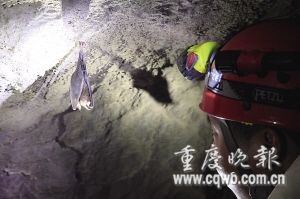 隊員發(fā)現(xiàn),一只巴掌大的蝙蝠倒掛巖壁,正呼呼大睡,絲毫不介意人類闖入;一只手指長的蜈蚣,正在尋覓食物,因長時間生活在黑暗環(huán)境,它褪去了深褐色肌膚,通體泛白……不過,這些原住民中,警惕性最高的數(shù)一只癩蛤蟆,它皮膚已泛白,見人靠近,立即鼓起腮幫,似在告誡眼前的人類,別惹我……