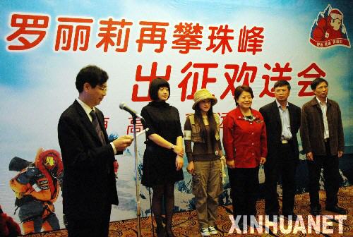 3月26日,羅麗莉(左三)在出征儀式上。當日,27歲的廣西女孩羅麗莉第二次登珠峰出征歡送會在廣西南寧舉行。羅麗莉從2002年到2007年,五次攀登了三座8000米以上的山峰,還曾創(chuàng)造了兩年連登三大高峰的奇跡。2006年羅麗莉曾嘗試登頂珠峰,但由于氧氣面罩漏氣等原因在登到海拔86