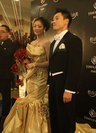 去年初冬,新詞匯“炒婚”橫空出世,而這一新詞的始作俑者便是北京奧運(yùn)會(huì)體操“全能王”楊威和他的妻子、同為體操運(yùn)動(dòng)員的楊云!巴啤贝蠡,最吸引人眼球的,莫過(guò)于坊間盛傳價(jià)值三千萬(wàn)的“黃金婚紗”。在中午十二時(shí)的婚宴上,楊云終于身穿這套“黃金婚紗”現(xiàn)身,使原本就俊美的新娘更加楚楚動(dòng)人。