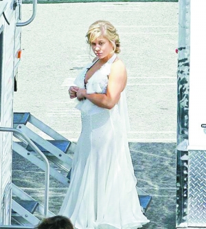 新娘顫顫巍巍地走向豪華房車。這短短的一路上,新娘的鉆石耳環(huán)耀眼奪目,鞋子也是西班牙著名設計師馬諾洛·布拉尼克的作品。再看新郎,全身黑色禮服雖顯低調,但都是時尚之選,6排扣西裝是由Tom Ford設計,而里面的小馬甲價值也有6000瑞士法郎。