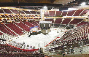 火箭的比賽不是在木地板上進(jìn)行的嗎?約什得意地笑了,“隱藏在255塊木地板下面,是一整塊冰!奔s什說完,立馬摳起一塊地板,讓記者親手觸摸到足足有1英寸厚的冰層。原來,豐田中心不單是火箭的主場,同時也是休斯敦冰球隊(duì)的主場。每當(dāng)火箭比賽前,豐田中心工作人員就會在冰面上鋪起木地板。當(dāng)冰球隊(duì)比賽前,木地板會被撤走。由于美國的冰球賽季幾乎和NBA賽季起止時間一樣,因此火箭隊(duì)整個賽季其實(shí)都是在冰面上比賽的!案鼡Q地板的過程需要4小時到6小時,我們?yōu)榈匕寰幜颂柕,可以更換得很快!奔s什說,由于常常是在冰球比賽第二天就會進(jìn)行籃球比賽,因此工作人員會通宵達(dá)旦地工作,以保證籃球隊(duì)第二天早上的訓(xùn)練。