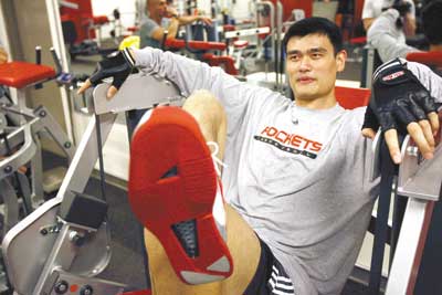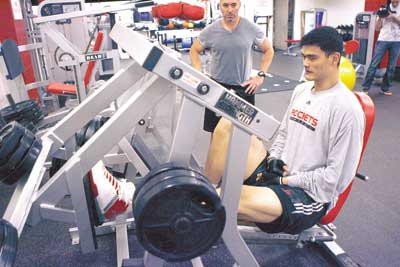隨著傷勢逐漸好轉(zhuǎn),姚明已開始進行恢復(fù)性訓(xùn)練。目前姚明每天都會將很大精力投入在力量器械上,從而保證缺陣期間的各項力量指數(shù)不至于下降,而腿部力量訓(xùn)練則是姚明訓(xùn)練中的重點。