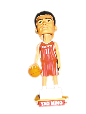 賽后,姚明得到一箱自己的搖頭娃娃。見蘭德里看得眼饞,姚明笑著吆喝:“100美元一個(gè)!