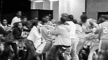 據(jù)《今日美國》報道,這起事件發(fā)生在蒙哥馬利市的阿拉巴馬州立大學籃球場內(nèi),當時進行比賽的雙方是卡文中學和山谷中學籃球隊。在第四節(jié)比賽僅剩6分23秒時,山谷中學的恩里克在一次防守時推搡對方中鋒約翰遜犯規(guī),約翰遜立即回以一記老拳。見勢不妙的兩隊替補隊員也沖上場來,場面隨即變得不可收拾。