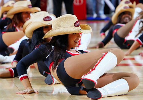 火箭拉拉女郎給我留下職業(yè)的印象還來自成功地采訪她們之后。蘇茜安排姑娘們跟我合影,她們嘻嘻哈哈地圍過來,但是在快門閃下之前的一剎那,所有人立馬都露出訓練有素的笑容。而我在看了照片之后發(fā)現,她們肩并肩、手挽手,一個親密合作的POSE。