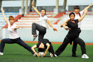 董靜拿了個(gè)足球在場(chǎng)上顛,基本上只能顛三四個(gè)。立在體育館門前的武術(shù)班教練簡(jiǎn)介上寫著,董靜曾獲得過(guò)河北散打錦標(biāo)賽65公斤級(jí)冠軍,但讓她參加散打比賽行,讓她控制好這個(gè)小小的皮球,卻不容易。美女功夫足球隊(duì)名聲在外,真要踢起比賽來(lái),不堪一擊。她們和當(dāng)?shù)貓F(tuán)委及一家外企的男隊(duì)進(jìn)行過(guò)兩場(chǎng)較量,結(jié)果慘不忍睹。