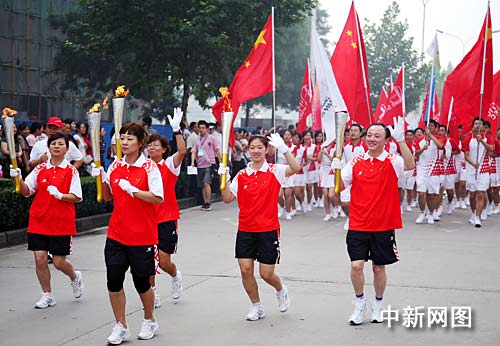 中新網(wǎng)石家莊8月18日電 (記者 牛琳) 18日上午,河北省會(huì)石家莊市世紀(jì)公園中心廣場(chǎng)歌舞歡騰,人們用喧天地鑼鼓迎接第十一屆全運(yùn)會(huì)火炬的到來。
