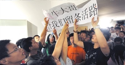 昨天上午10點(diǎn)多,300余名球迷涌入工體國安足球俱樂部,抗議在苦等數(shù)小時(shí)后仍買不到本月30日國安與魯能比賽的門票,指稱售票窗口與“黃!惫唇Y(jié),使得大量門票落入“黃!笔种。最終,為安撫球迷們的情緒,國安俱樂部破例追加售票。 >>現(xiàn)場球迷擠破暖氣片