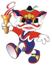 會徽:會徽中間豐滿,兩端漸細(xì)的曲線給人無限的延伸感,配合傾斜的線條,更顯奔騰飛躍之意。對比鮮明的紅、黃、藍(lán)三色,對視覺有強烈的沖擊力。造型灑脫地色勒出一個“9”,既直接傳達(dá)了九運會的信息,又宛如一位矯健、充滿活力、奮發(fā)向上的運動員,豪邁跨入新世紀(jì)。