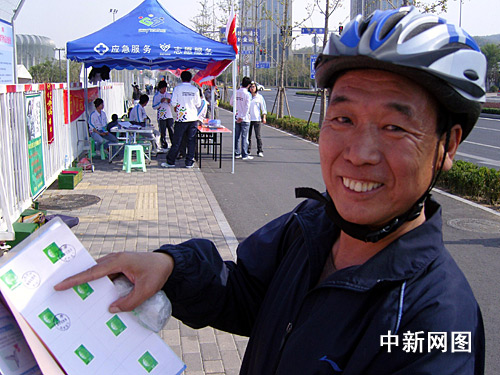 中新網(wǎng)濟南10月25日電(記者 翁陽)10月25日是飛人劉翔進行第十一屆全運會110米欄決賽的日子。中午時分,本社記者在濟南奧體中心巧遇兩名專程從石家莊趕來觀看劉翔比賽的六旬老翁。杜存生和李云江這兩位老人神采奕奕,一身專業(yè)體育裝備,他們以單車每日百余公里的速度,用時三天來到濟南。