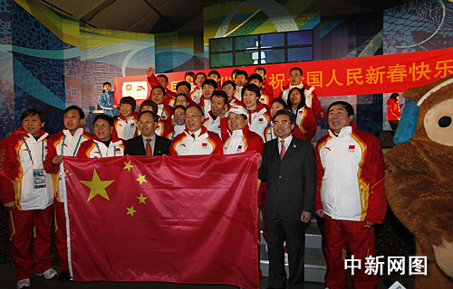 中新網(wǎng)溫哥華2月10日電 (記者 夏宇華 賴(lài)海隆)中國(guó)冬奧代表團(tuán)今天在雨中舉行了升旗儀式,正式成為本屆冬奧會(huì)大家庭成員。升旗儀式后,中國(guó)代表團(tuán)團(tuán)長(zhǎng)劉鵬帶領(lǐng)代表團(tuán)成員展開(kāi)橫幅高聲向全體國(guó)人送上新春祝福。