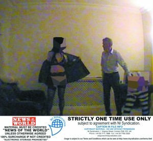 已曝光的圖片和視頻顯示,莫斯利打扮成一位納粹軍官,而現場環(huán)境有意模仿二戰(zhàn)時的集中營,妓女們或穿著猶太人、德國獄卒的服裝,或赤身裸體趴在莫斯利身邊,后者則開始審判“犯人”,并手持長鞭抽打,每打一下莫斯利的嘴里還念念有詞,妓女們也非常配合,按莫斯利要求在他用德語咒罵時仍面帶笑容。莫斯利對這種角色扮演游戲顯然愛不釋手,看到妓女們的反應后老頭子樂不可支,不住興奮叫喊,而后他反要求5女將自己捆綁起來鞭打。