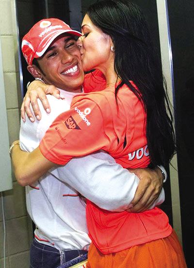 漢密爾頓摘冠軍女友狂喜 熊抱男友深情激吻(圖)