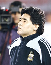 阿根廷隊(duì)上周在友誼賽中,以全部本土球員出戰(zhàn),2比0戰(zhàn)勝加納隊(duì),這兩個(gè)進(jìn)球都是由巴勒莫打進(jìn)的。馬拉多納通過(guò)這場(chǎng)比賽,選拔了9名本土球員。