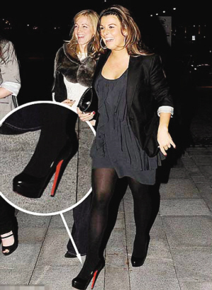 當(dāng)晚,科琳選擇了最具收斂效果的黑色連衣裙,就連設(shè)計也是突出遮擋功能的散身款。擺脫了便便大腹之后總算又能名正言順穿回了酷愛的高跟鞋,這一次科琳選擇了頂級鞋履品牌克里斯提·魯布托的設(shè)計,值得一提的是,這雙6英寸的高跟鞋造價至少500英鎊。