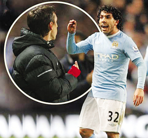 昨天,英格蘭聯(lián)賽杯半決賽首回合進(jìn)行了一場曼徹斯特同城德比,結(jié)果曼城在第17分鐘就先被對方隊長吉格斯率先破門的不利形勢下,憑借前曼聯(lián)舊將、阿根廷國腳前鋒特維斯在第40分鐘的點球、第65分鐘的頭球,最終在主場以2:1險勝曼聯(lián)。值得關(guān)注的是,綽號“野獸”的特維斯此番面對“拋棄”他的老東家紅魔曼聯(lián)首度進(jìn)球,而且還是梅開二度。不過,反咬紅魔快意復(fù)仇的“野獸”在進(jìn)球后帶有挑釁、示威意味的張狂慶祝動作,卻引發(fā)了一場鬧劇。