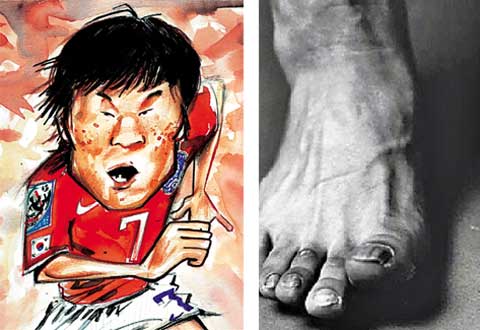 報(bào)道中稱,在世界杯韓國隊(duì)同希臘隊(duì)的比賽下半場第7分鐘,樸智星打入了制勝球,而這粒入球,仿佛是韓國足球?qū)θ澜绲男。樸智星朝著觀眾席展開雙臂不停旋轉(zhuǎn),還高聲吶喊,這樣的慶祝動作似乎是在宣布“韓國足球不再局限于亞洲的框架內(nèi)”。樸智星將希臘隊(duì)的兩名高個(gè)后衛(wèi)甩在后面,在球場上迅速跑動并洞穿球門時(shí),所有韓國國民的內(nèi)心都激動不已。樸智星是韓國足球的核心人物。在90分鐘的比賽中全程劇烈跑動的樸智星,就像韓國足球的“心臟”,讓韓國足球充滿活力。