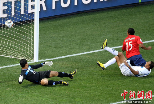終場前智利隊(duì)伊斯拉右邊路帶球內(nèi)切傳球,可惜費(fèi)爾南德斯在禁區(qū)線上沒有停好,浪費(fèi)了一個(gè)不錯(cuò)的進(jìn)攻機(jī)會(huì)。1-0的比分保持了了終場。