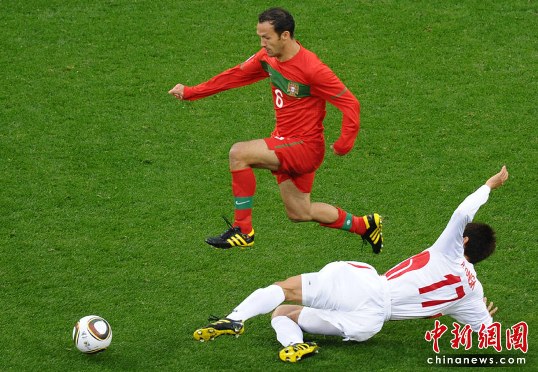 中新網(wǎng)6月21日電 北京時(shí)間今晚,世界杯G組第二輪一場(chǎng)小組賽在開普敦的綠點(diǎn)球場(chǎng)舉行,最終葡萄牙7比0狂掃朝鮮,創(chuàng)造了本屆世界杯最懸殊比分。上半時(shí),卡瓦略頂中立柱,中場(chǎng)梅雷萊斯首開紀(jì)錄。下半時(shí),蒂亞戈梅開二度,西芒、阿爾梅達(dá)、列德松、C羅各下一城。