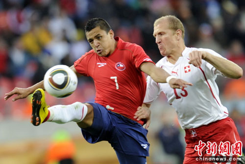 中新網(wǎng)6月21日電 北京時(shí)間今晚,世界杯H組第2輪首戰(zhàn)在伊麗莎白港納爾遜-曼德拉灣球場(chǎng)展開(kāi)較量。瑞士中場(chǎng)貝赫拉米連續(xù)肘擊兩人,被紅牌罰下后,以十人應(yīng)戰(zhàn)的他們?cè)谙掳雸?chǎng)被智利隊(duì)岡薩雷斯打入一球,以0-1告負(fù)。