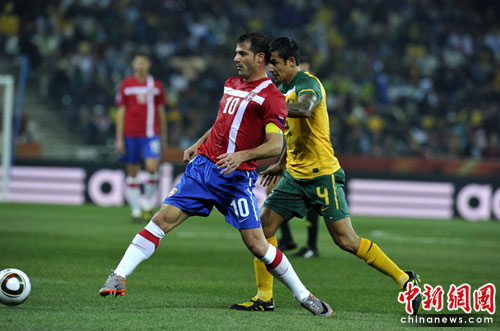 中新網6月24日電 今天凌晨,南非世界杯D組進行了最后一輪的較量。塞爾維亞在內斯普雷特的姆伯貝拉體育場迎戰(zhàn)澳大利亞隊。雖然澳大利亞2-1擊敗塞爾維亞隊,但仍然因為凈勝球劣勢不敵加納,無緣小組出線。