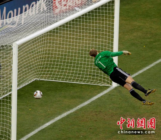 《太陽報》稱,進球不算!迪福得球后傳給蘭帕德,蘭帕德的遠(yuǎn)射越過了德國隊的守門員,擊中了橫梁后彈進球網(wǎng)范圍,不過裁判卻沒有判進球有效!看上去皮球進了球門線整整一碼啊。
