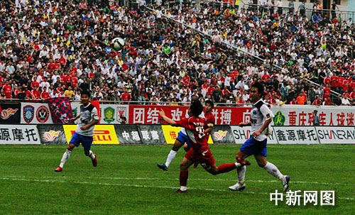中新網(wǎng)重慶5月17日電 (孟幻)17日,2009中國足協(xié)超級聯(lián)賽第9輪最后一場比賽打響,重慶詩仙太白主場迎戰(zhàn)長沙金德。最終,雙方互交白卷,以0:0握手言和。重慶隊9輪過后僅積6分,排名繼續(xù)墊底中超。