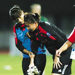 中澳比賽進行到下半時后半段,屈珊珊后場開球拖延時間被黃牌警告。傷停補時階段,門將張越出擊受傷后倒地并接受隊醫(yī)進場治療,此時澳大利亞球員杰西卡卻認為中國隊隊醫(yī)故意拖延比賽時間,與中國隊員發(fā)生肢體沖突。印度主裁判本迪卡在與韓國助理裁判商量后,將澳大利亞隊杰西卡紅牌罰下,這引起了澳大利亞主教練的大大不滿。