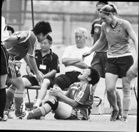 馬曉旭是4月1日受傷的,當(dāng)時女足正在踢熱身賽,與第二次受傷一樣,在沒有任何征兆甚至沒有任何拼搶的情況下,馬曉旭突然倒地?粗е蚁ネ纯嗟臉幼,全隊人心都提到了嗓子眼。檢查結(jié)果證明了最壞的猜測,那條脆弱的十字韌帶再次斷裂。在昆明度過了漫長的4天之后,5日下午,馬曉旭與幾位大連隊友返回大連。當(dāng)她坐著機場的輪椅被推出來時,早已守候在機場大廳的曉旭媽媽急急迎上去,把一副拐杖遞給女兒,扶女兒站起來走出機場,此時曉旭母親已淚流滿面。
