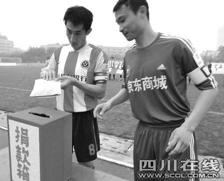 2:1的勝利結(jié)束之后,連續(xù)兩 場進(jìn)球的成足隊(duì)長李鋼說,“希望災(zāi)區(qū)的人們像我們今天比賽一樣,無論遇到什么樣的困難,只要我們團(tuán)結(jié)一心,只要我們選擇堅(jiān)強(qiáng),我們都能獲得最終勝利!”比賽結(jié)束之后,球迷散去的人群中還有纏著綠絲帶的志愿者球迷在募捐,“球賽盡管結(jié)束了,可是我們還想為災(zāi)區(qū)再多做一點(diǎn)事情,我們做得越多,他們受到的苦難就會越少!