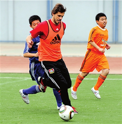 由于球員傷病或去國(guó)家隊(duì)備戰(zhàn)世界杯,勒沃庫(kù)森隊(duì)中阿德勒、克羅斯和基斯林等無(wú)法來(lái)華,不過(guò)前德國(guó)國(guó)腳M·弗里德里希以及辛基維奇、卡斯特羅和黑爾默斯等明星球員均隨隊(duì)前來(lái),全隊(duì)最大牌的還是德國(guó)前國(guó)家隊(duì)主教練沃勒爾。昨天下午,弗雷德里希等球員來(lái)到回民中學(xué),在球場(chǎng)上對(duì)學(xué)校小球員們進(jìn)行了技術(shù)指導(dǎo)。