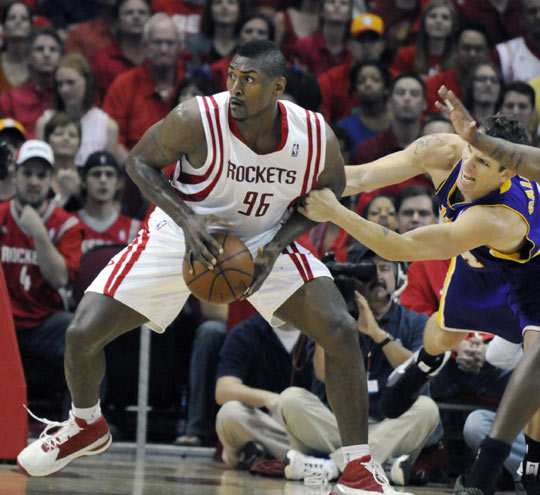 第二節(jié)科比率先跳投命中,但巴蒂爾和阿泰斯特三分中的,蘭德里暴扣,此后沃弗跳投外加三分幫助火箭將領(lǐng)先優(yōu)勢擴(kuò)大到17分。但此后斯科拉連罰帶投一人得到4分,科比急躁之下惱羞成怒,和阿泰發(fā)生沖突被判技術(shù)犯規(guī)。上半場最后3秒,布魯克斯右翼三分命中,火箭52-36領(lǐng)先進(jìn)入半場休息。